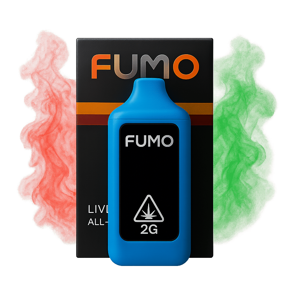 The FUMO Live Resin Disposable (2g) delivers dual-flavored hits in a sleek, powerful all-in-one device. Potent live resin, bold terpene flavor, and the freedom to switch up your vibe anytime.