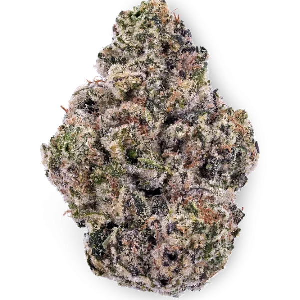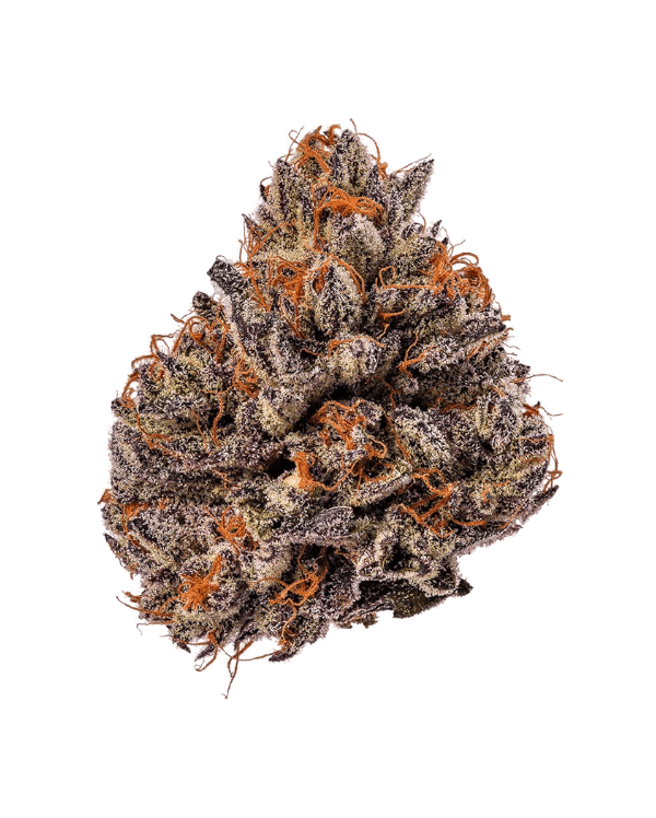 Visually, the buds are extremely colorful and eye-catching, often showing deep purple hues with bright orange pistils and a thick coating of frosty trichomes.
